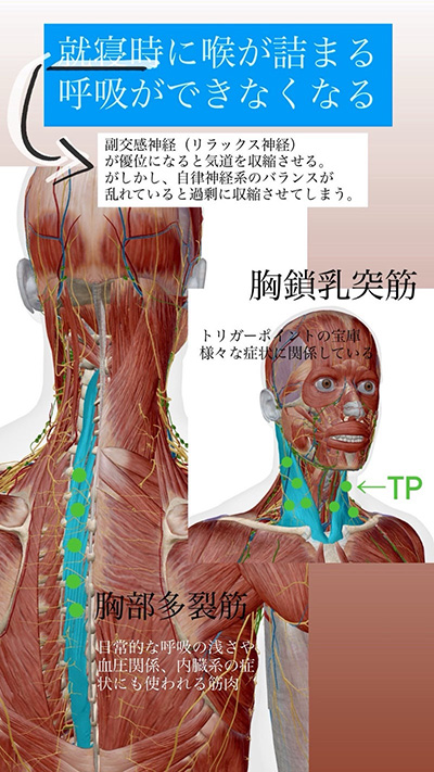 特に胸鎖乳突筋は呼吸器系の疾患の原因となっていることが多いです。