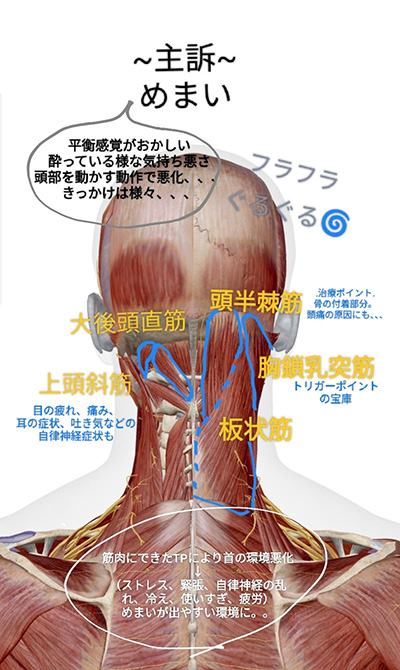 認知覚のある筋肉とめまいの原因になっている筋肉